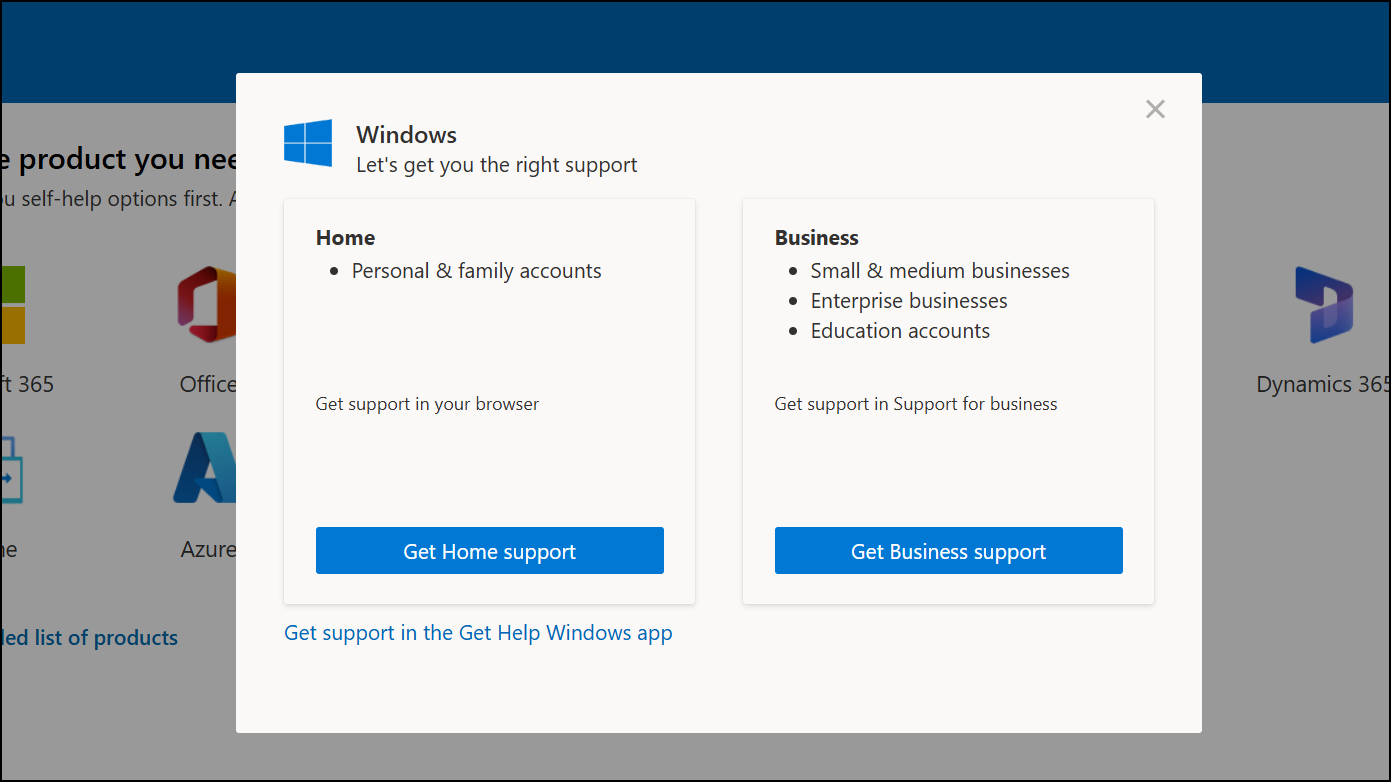 Step 1: Visit the official Microsoft Support contact page and choose the relevant options to reach the activation support team.