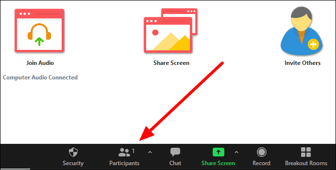 To make someone co-host in a Zoom meeting, open the participants panel by clicking the ‘Participants’ option at the bottom of the Zoom meeting control bar.