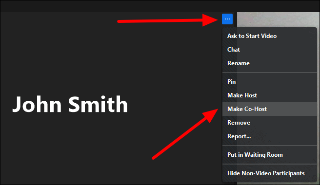 There are two ways of adding a co-host in a Zoom meeting. One is to make someone co-host directly from their video feed, or from the ‘Participants’ panel.
