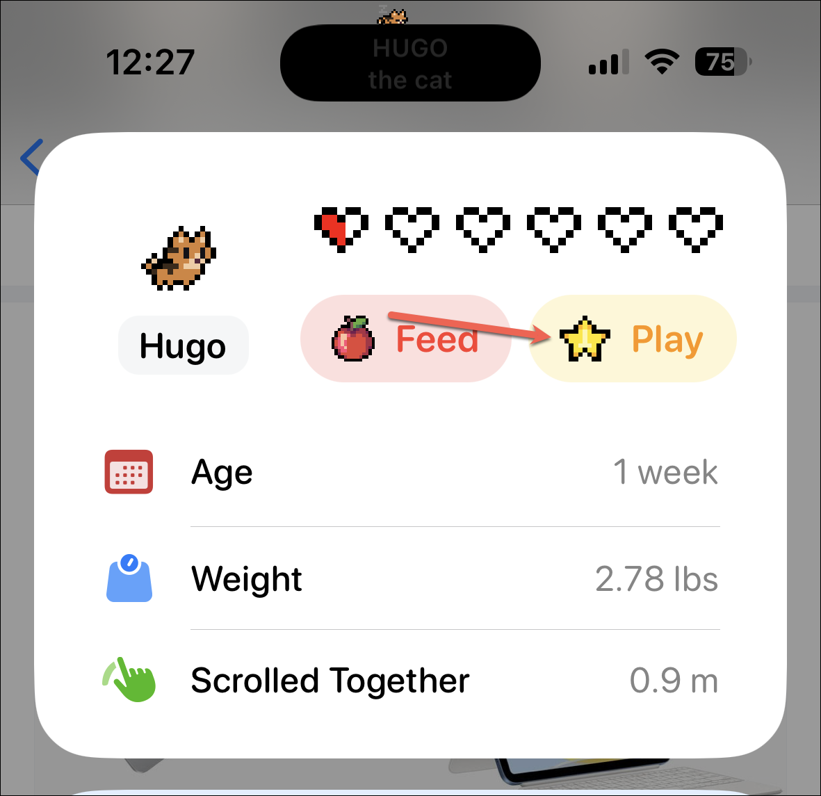 You can also play with your pet by tapping ‘Play’.