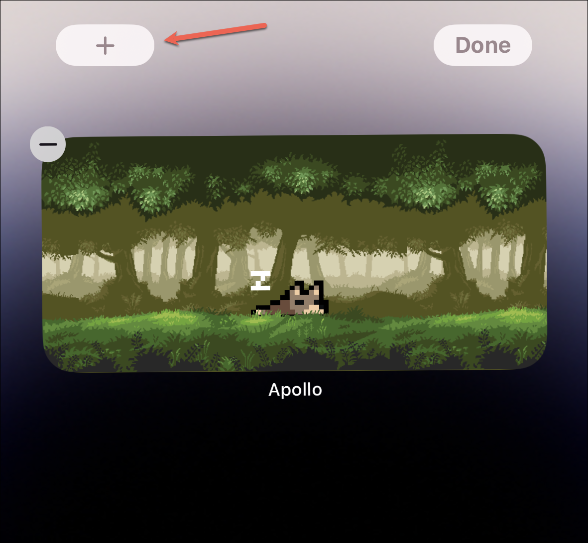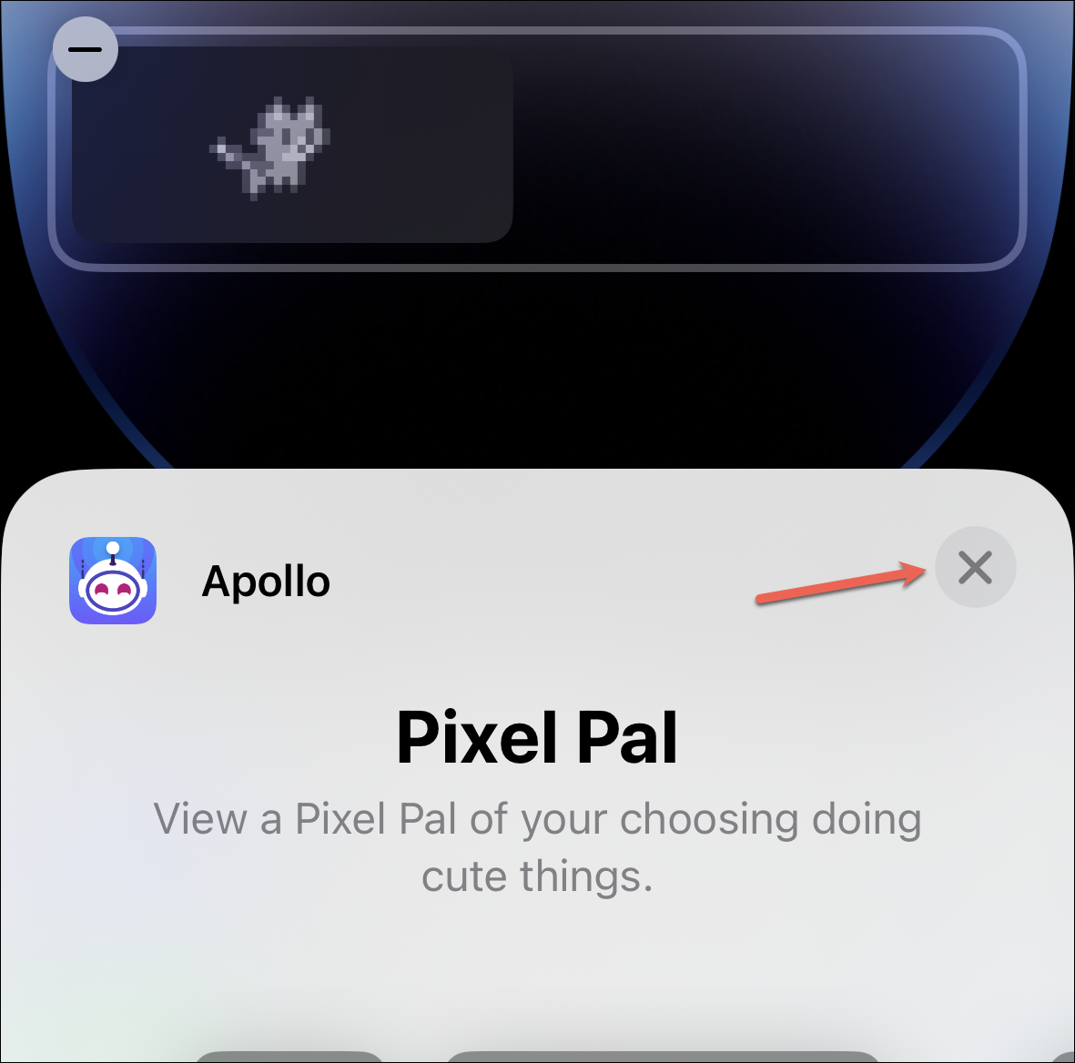An overlay menu for adding Apollo widgets will open. Select the Pixel Pal widget you want to add to your lock screen from the two sizes available.