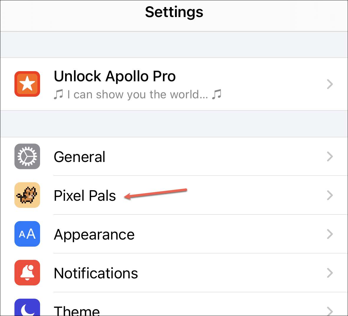 Then, tap the ‘Pixel Pals’ menu option.