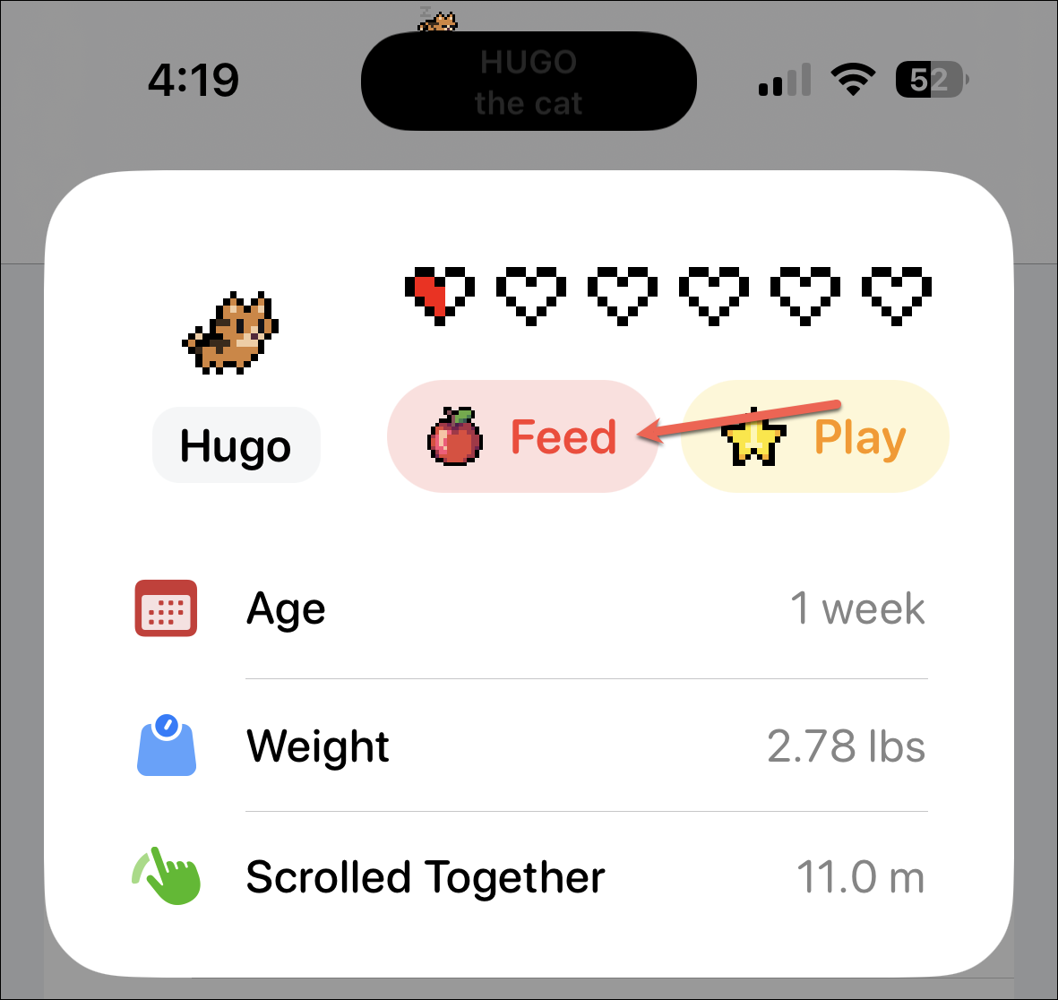 Tap ‘Feed’ to feed your pet.