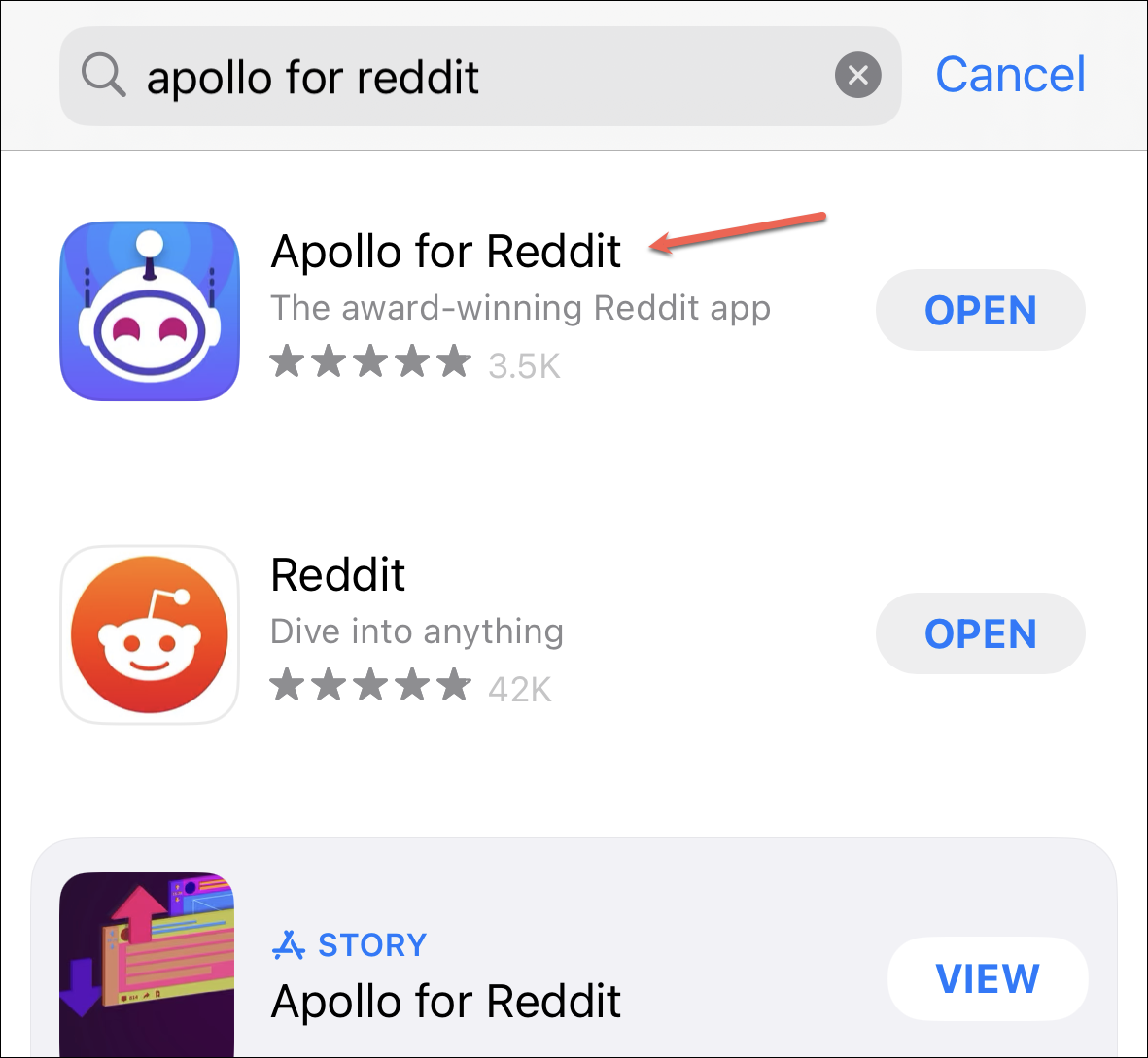 Go to the App Store and search for Apollo for Reddit. You can also get the app using this link.