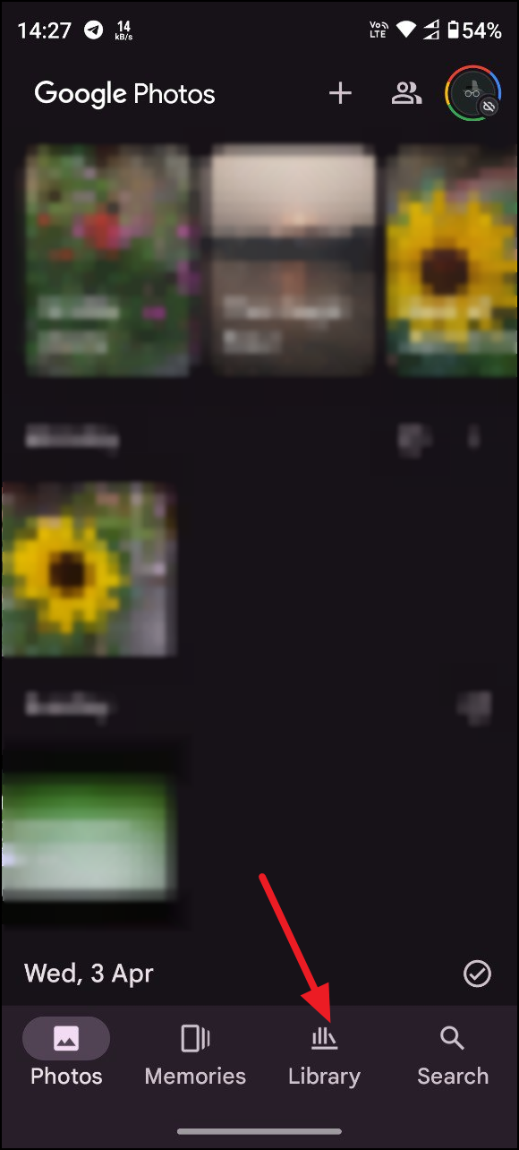 - Open the Google Photos app on your Android device and tap on the 'Library' option at the bottom.
