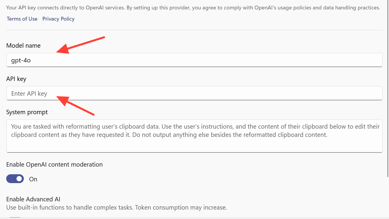 Advanced Paste now understands both online and local AI backends. The supported providers are: