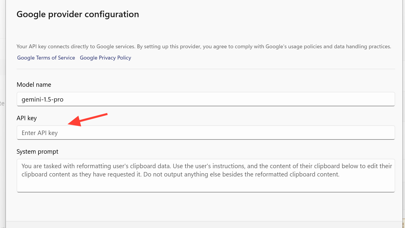 Step 3: Enable the Paste with AI option. Without this toggle, model providers will not be used even if configured.