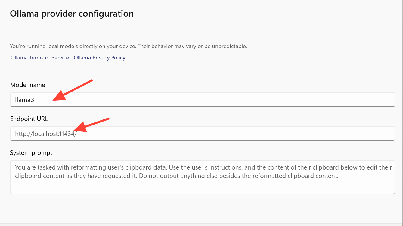 Local providers are what turn Advanced Paste into an on-device tool. Foundry Local and Ollama both run models on your own hardware, including NPUs in newer Windows PCs.
