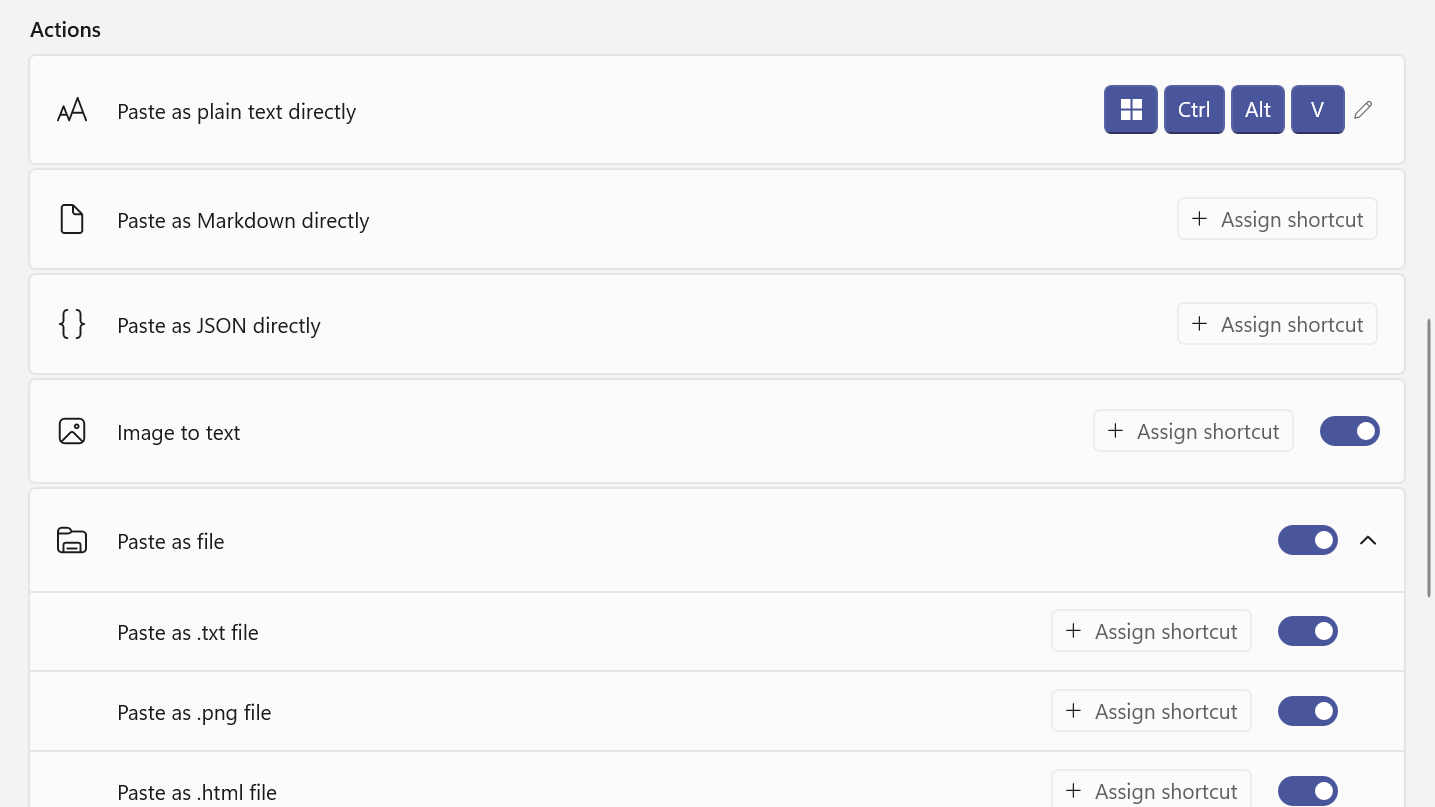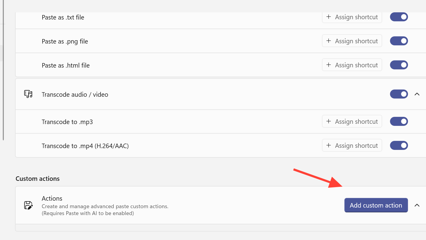Step 1: In Advanced Paste settings, scroll to the Actions section.
