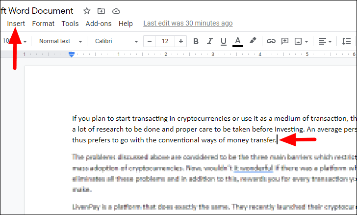 Step 2: Navigate to the menu bar at the top and click on the Insert option.