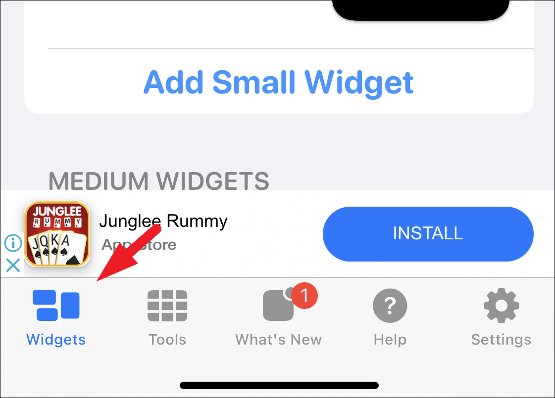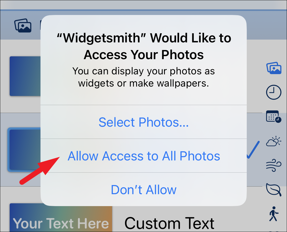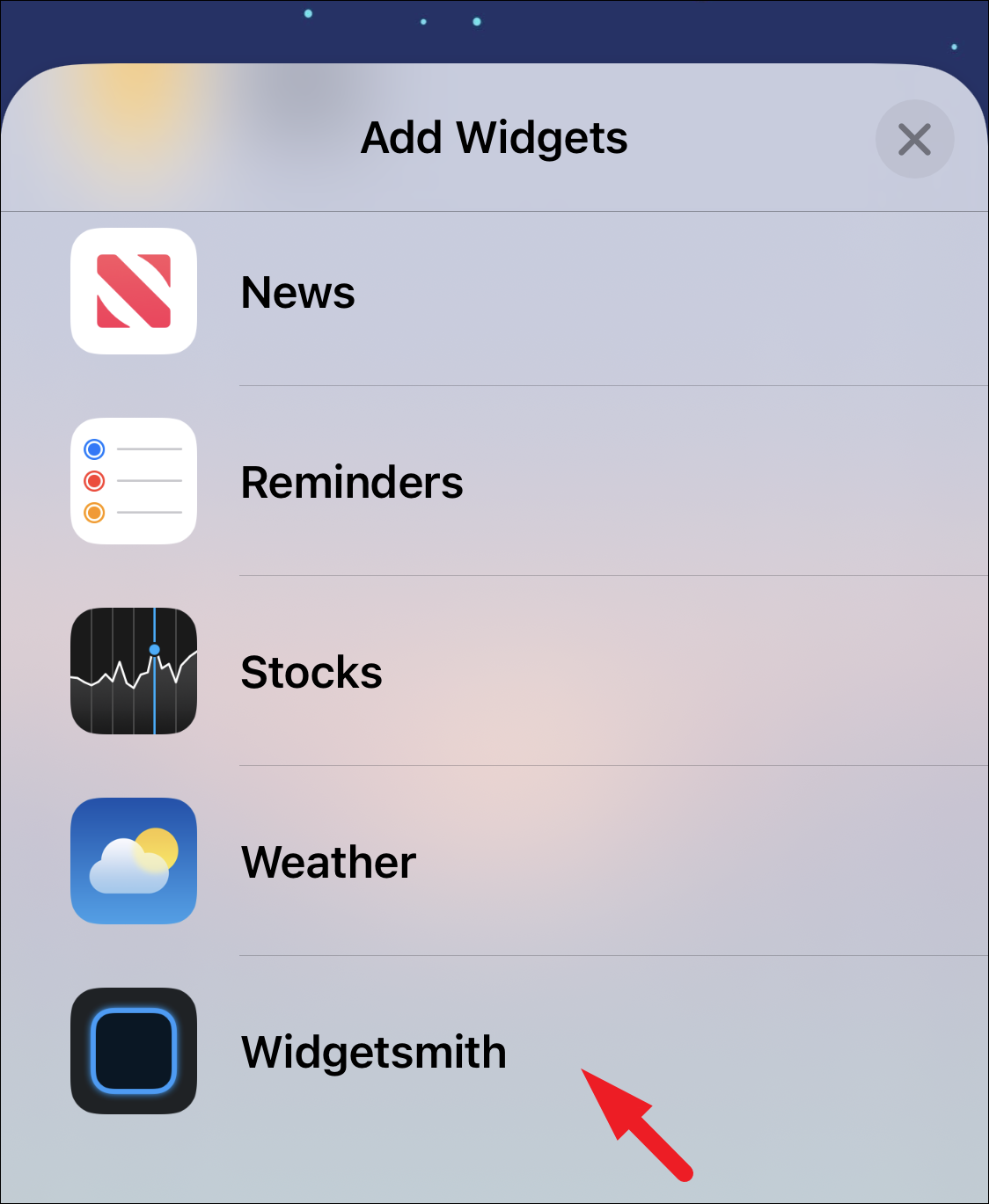 Next, locate and tap on the ‘Widgetsmith’ option. This will again bring an overlay pane.