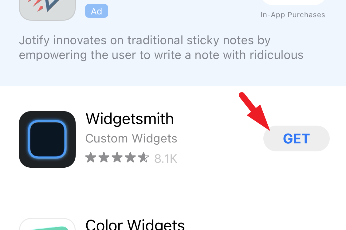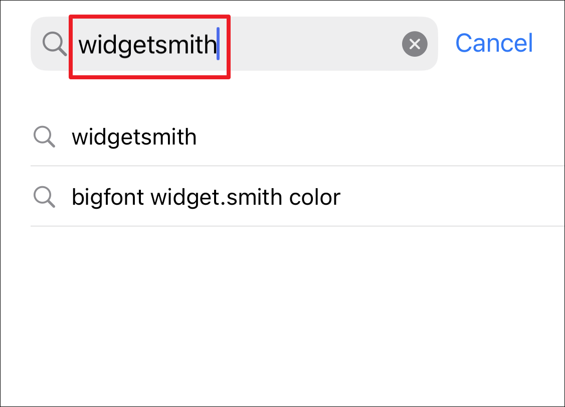 Next, type WidgetSmith in the search bar and hit the ‘Search’ button to continue.