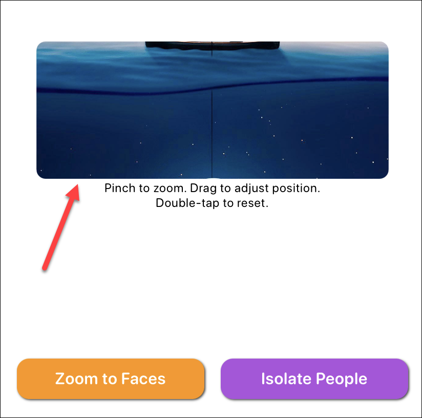 A preview of the photo will appear. You can pinch to zoom the photo or move it around to adjust. There are also options to zoom to faces or isolate people by removing the background.