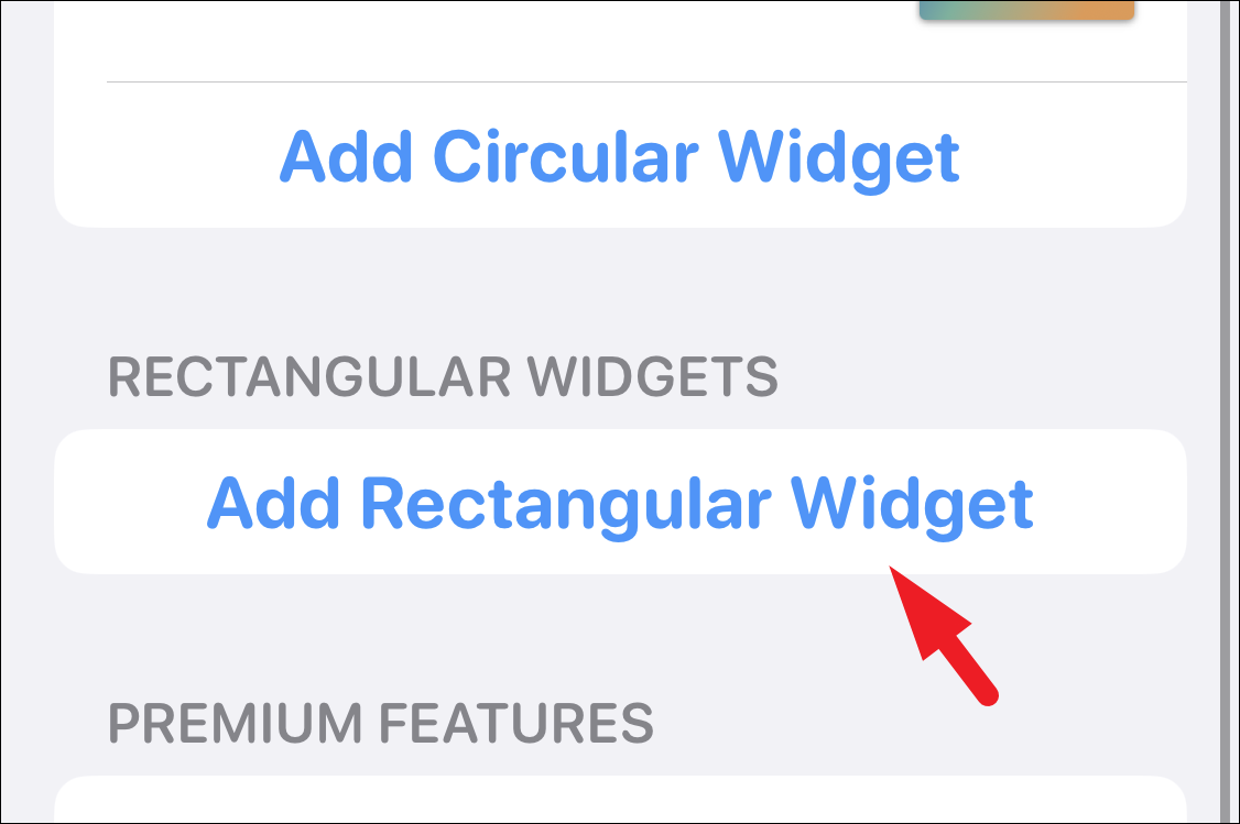 Next, scroll and tap on the ‘Add rectangular widget’ or ‘Add Circular widget’ option to proceed. The process is the same for both types of widget. Here, we’ll illustrate using the rectangular widget. This will bring an overlay pane to your screen.