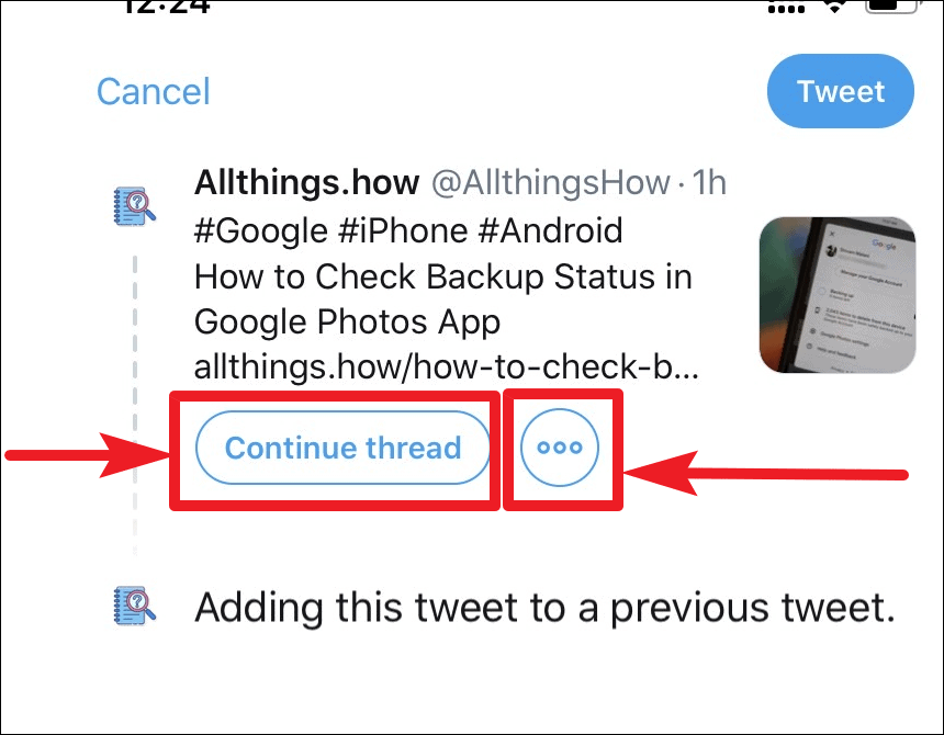 If you want to add the new tweet to your most recent tweet (that’s is displayed on the screen), tap the ‘Continue thread’ button and you’ll be good to go.