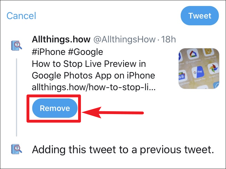 If you want to change the tweet you selected, tap the Remove button. It’ll once again show the most recent tweet. Tap the three-dots menu button again to select a different tweet.