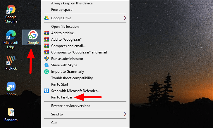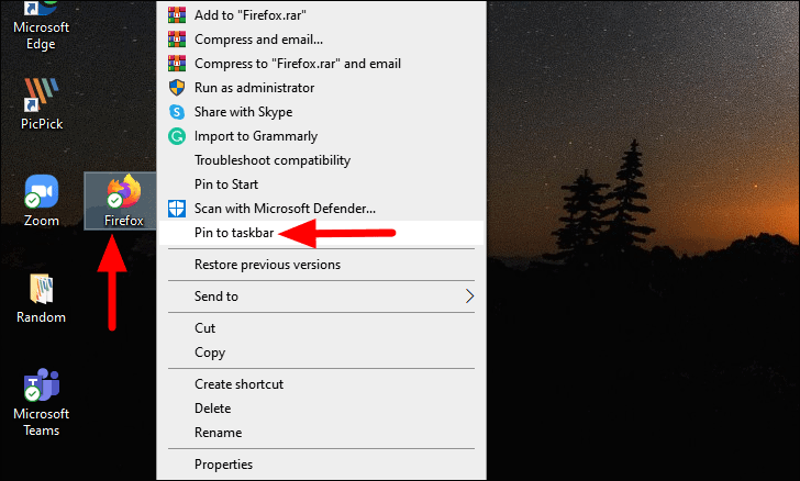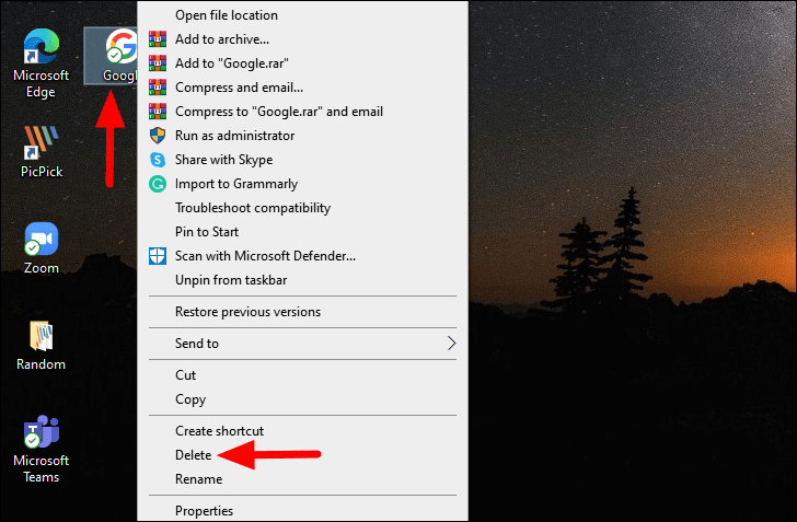 After the shortcut has been added to the Taskbar, you can safely remove it from the desktop by right-clicking on it, and then selecting ‘Delete’ from the context menu.