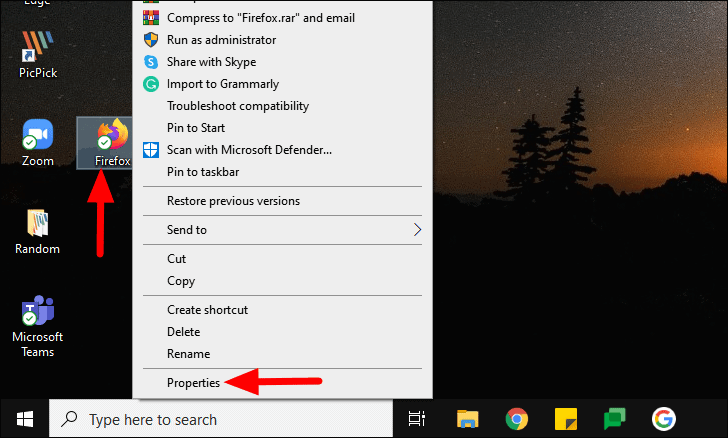 After you have created a shorcut for ‘Firefox’, navigate to the Desktop, right-click on the ‘Shortcut’, and then select ‘Properties’ from the context menu.