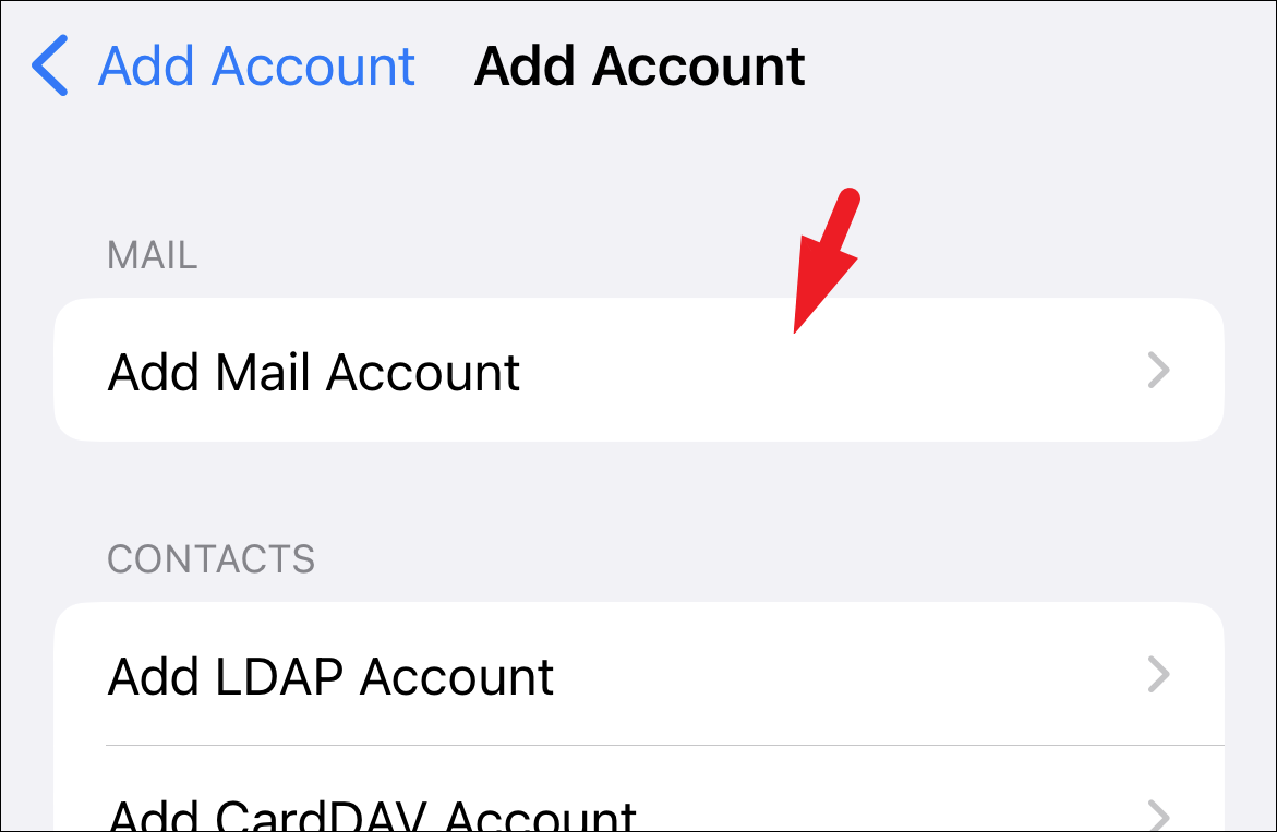 Then, tap on the ‘Add Mail Account’ option to continue.
