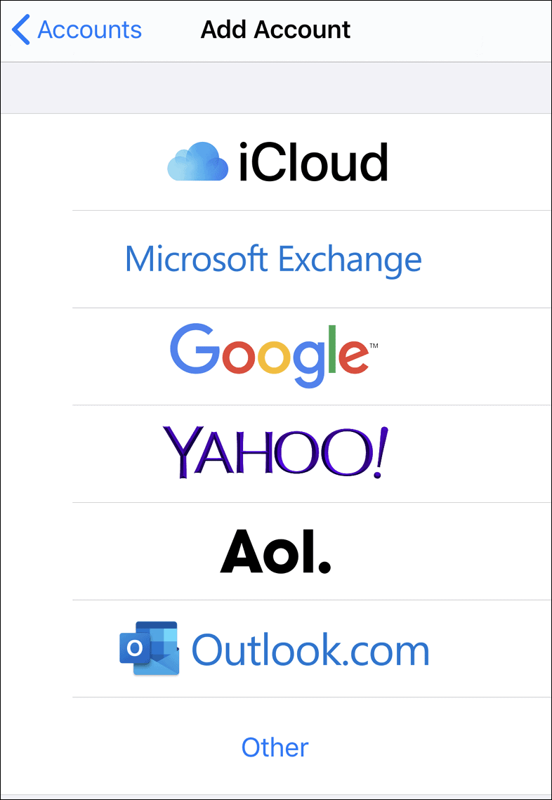 Apple has built-in shortcuts to add accounts from iCloud, Microsoft Exchange, Google, Yahoo, and Outlook. If your account is from any other provider, you can manually set it up from the ‘Other’ option.