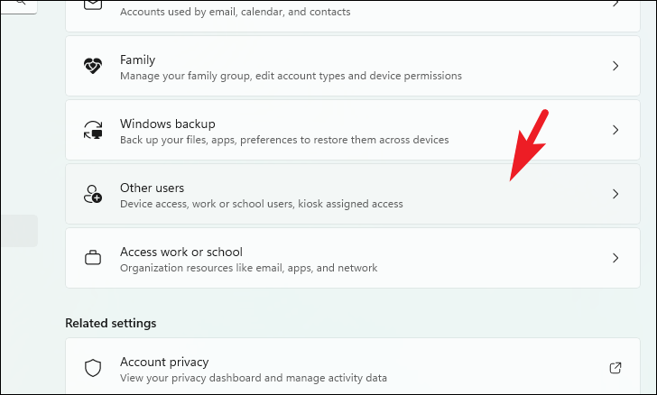 Step 3: On the right side, select the Other users option to proceed.