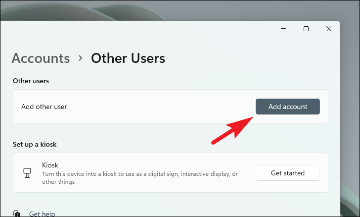 Step 4: Click on the Add account button. A new window will open for adding a user.