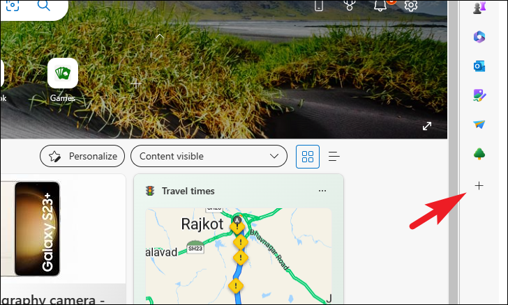 Step 1: Open Microsoft Edge on your Windows PC or Mac. Look for the sidebar on the right side of the browser window and click on the '+' icon to add a new item.