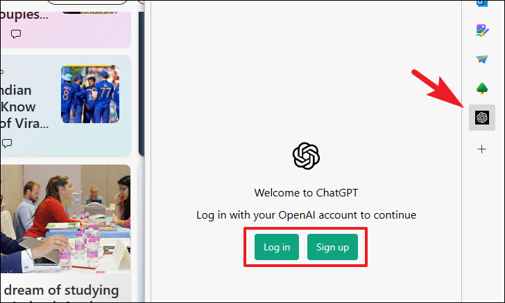 Step 4: ChatGPT is now added to your sidebar. You can open it anytime with a single click. The first time you access it, you'll be prompted to log in or sign up to start using the chatbot.