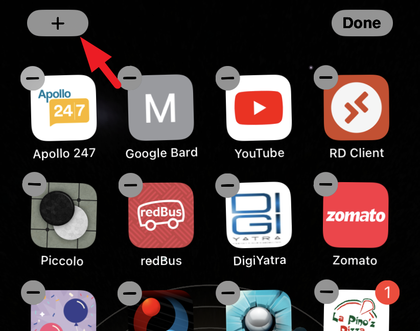 First, long tap on the Home Screen or Today View till all the apps/ widgets wiggle. After that, tap on the '+' icon from the top left corner to proceed.