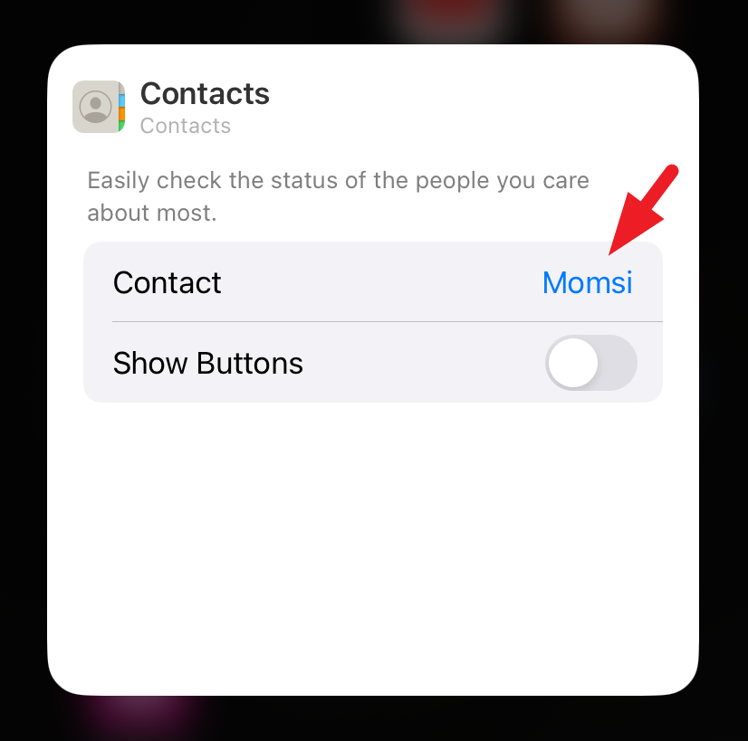 If the contact has multiple numbers or methods of contact (e.g., FaceTime call, normal call, third-party app), you can choose which you wish to bind to the widget button for both messaging and calling.