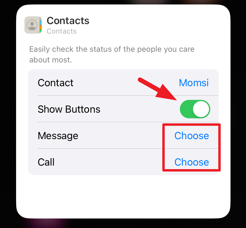 Once you have added the widget on your Home Screen or Today View, you can toggle the call/message buttons.