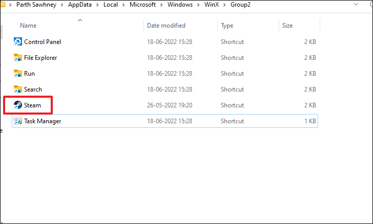 Step 6: Open File Explorer and navigate to the WinX folder by entering the following path in the address bar and pressing Enter: