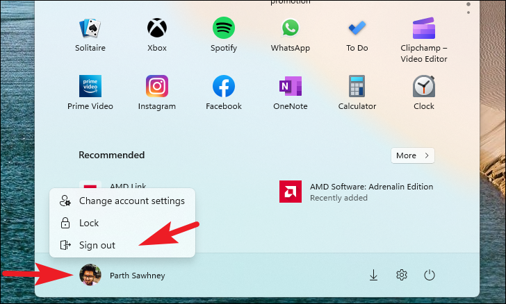 Step 17: After running the command, sign out of your Windows account to apply the changes. Click on the Start menu, select your user account icon, and choose 'Sign out'. Then, sign back in to your account.