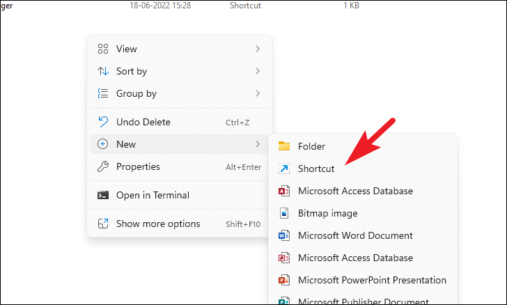 Step 8: In your chosen group folder, right-click on an empty area, hover over 'New', and select 'Shortcut' to create a new shortcut.