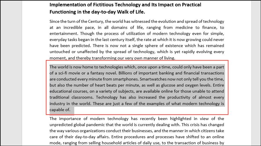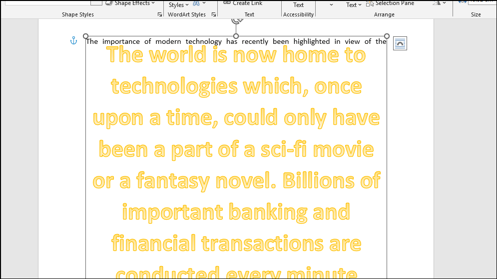 - Open the Word document where you want to apply text effects and select the word, sentence, or paragraph in question.