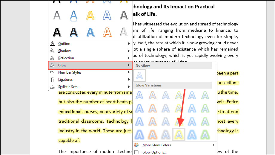 Like any word-processing software, Microsoft Word lets you format text in multiple ways, such as by changing font styles, sizes, and colors. However, you can go one step further by applying text effects to make sections of your document stand out.