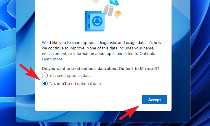 Step 8: You'll be prompted to choose whether you want to send optional diagnostic data to Microsoft. Select your preferred option and click 'Accept' to continue.