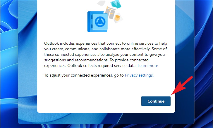 Step 9: On the final setup screen, click 'Continue' to finish adding your Gmail account to Outlook.