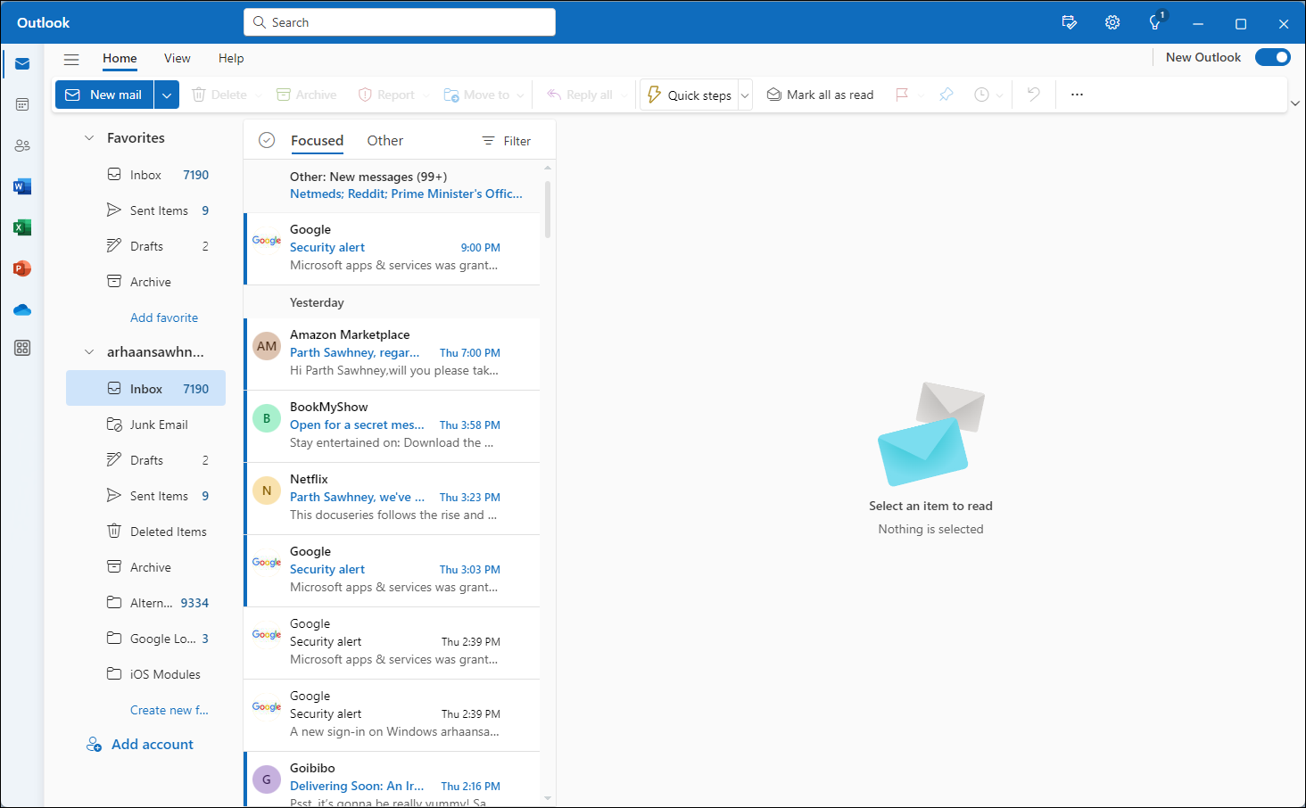 Optional: If you prefer to use the classic version of Outlook, you can switch back by toggling off the 'New Outlook' option located at the top-right corner of the app.