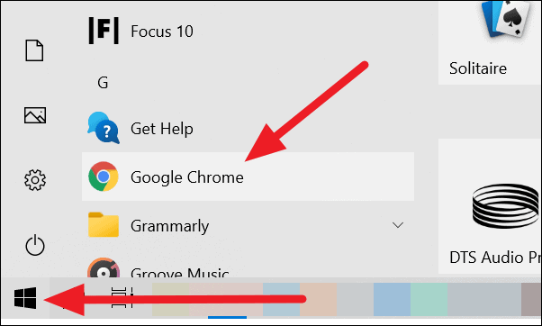 Step 1: Click on the Start button and scroll through the list of applications to find 'Google Chrome'.