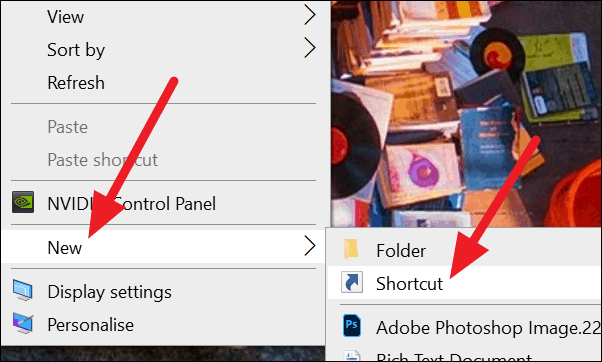 Step 1: Right-click on an empty area of your desktop to open the context menu. Hover over the 'New' option, then click on 'Shortcut'.
