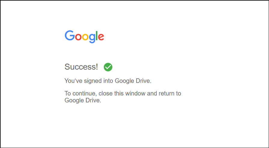 Step 9: After successfully signing in, you will see a 'Success' message. You can now close the browser window and return to the app.