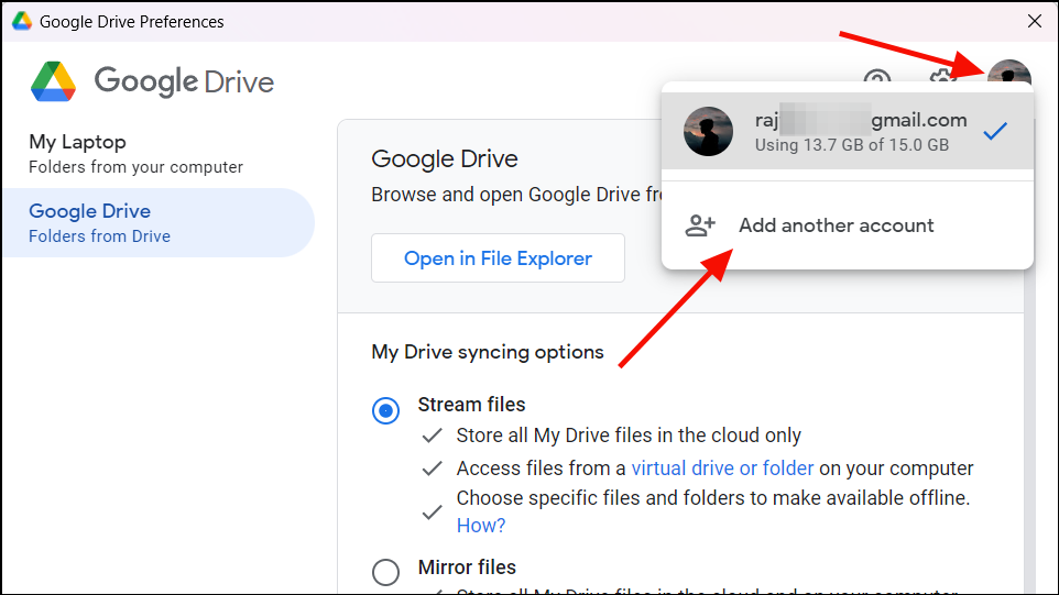 You can add multiple Google accounts to the Google Drive app, allowing you to access files from different accounts in File Explorer.