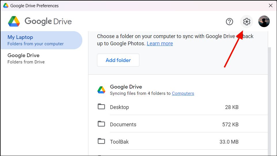 Step 1: In the Preferences window, go to the 'My Laptop' or 'My Computer' tab and click 'Add folder'.