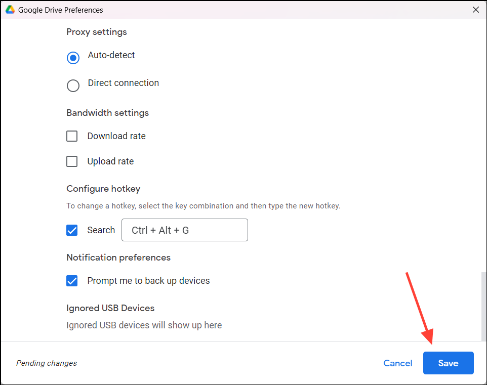 Step 1: In the Preferences window, navigate to the 'Google Drive' tab and select your preferred sync method.
