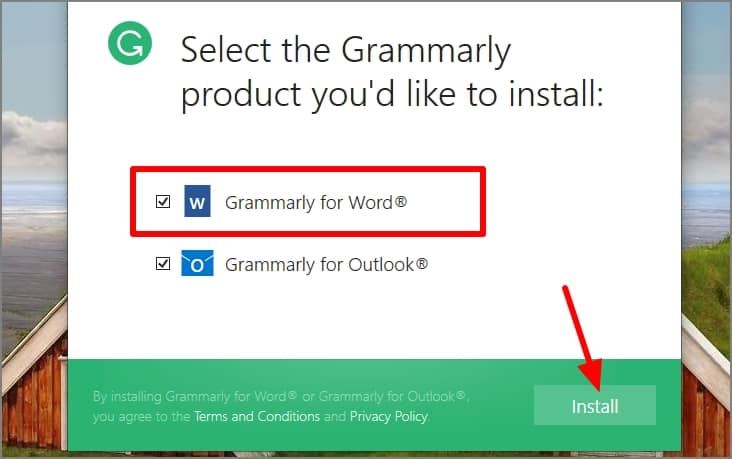 Step 4: On the next screen, check the box next to 'Grammarly for Word' and then click on 'Install'.
