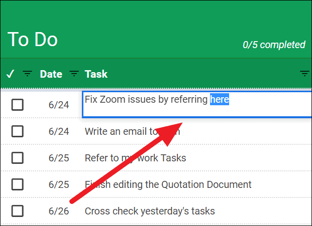 Step 1: To link to another Google Document, such as a Sheet, Doc, Slide, or Form stored in your Google Drive, start by selecting the cell or text you want to hyperlink.