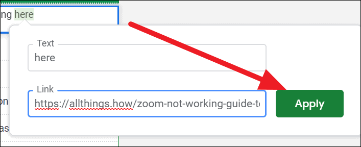 Step 5: Click on the Apply button to create the hyperlink. Now, hovering over the cell will display a link that takes you directly to the linked sheet when clicked.