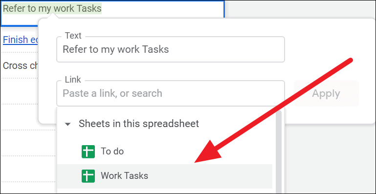 Step 4: Choose the sheet you want to link to by clicking on its name from the list.