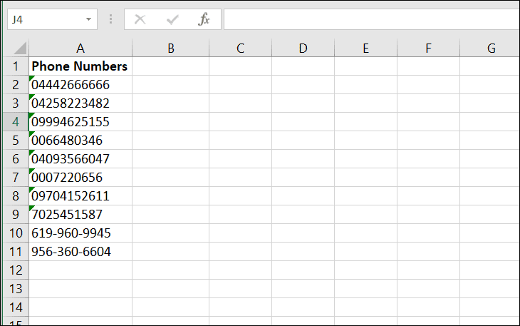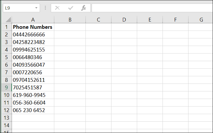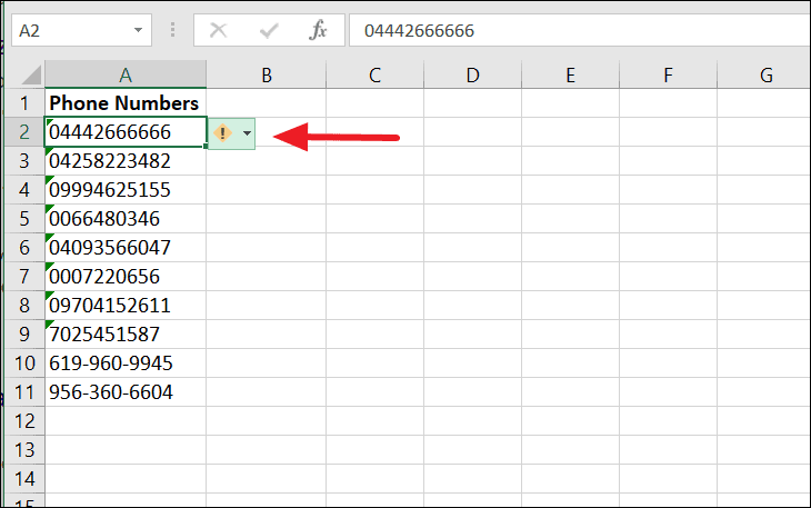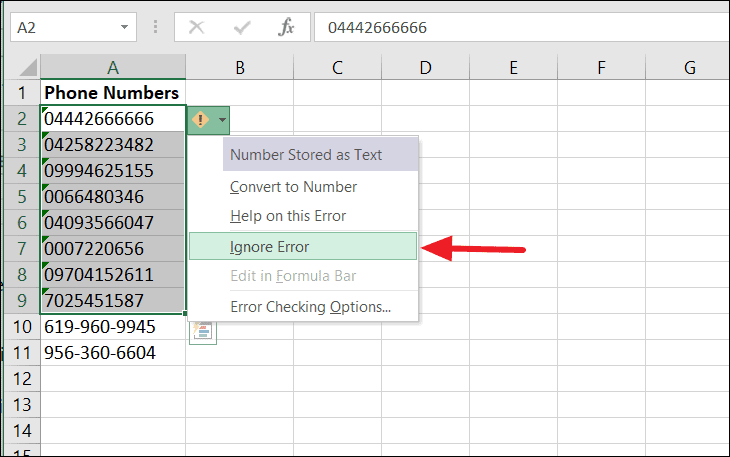 You can also type phone numbers with space or hyphen between number, Excel will automatically treat these numbers as text.